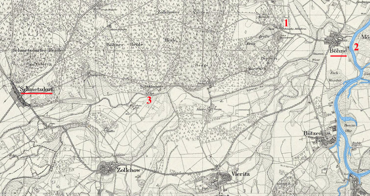 Böhne: 1 Zgl. Schäferei Böhne. 2 Zgl. An der Havel. 3 Zgl. Kahlenhütte (bei Schmetzdorf) vergrößern ...