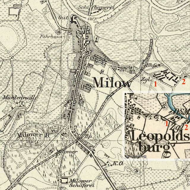 Im Jahre 1861 erwarb der nunmehrige Holzhändler (Leopoldsburg) und Ziegelei(mit)besitzer (Bützer) Friedrich Schmidt an der sogenannten Mühlenbreite in Milow ein Grundstück mit einer Fläche von 1,3 ha, um eine Ziegelei zu errichten. Siehe Karte unten ...